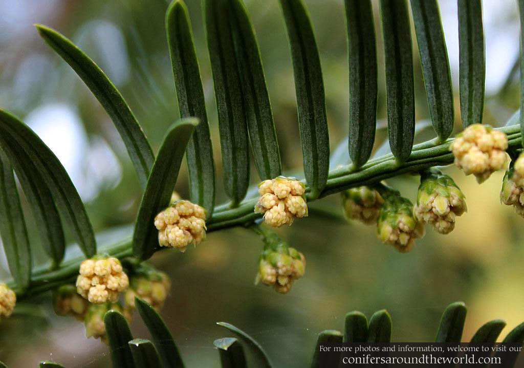 Cephalotaxus harringtonia из Японии. Те самые головчатые собрания микростробилов, от которых произошло название рода и семейства (ссылка на источник фотографии)