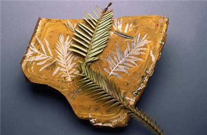 Wollémia nobilis: отпечаток на камне, которому многие миллионы лет, и живая веточка с этого «живого ископаемого» (ссылка на источник фотографии)