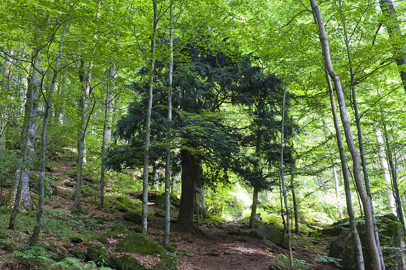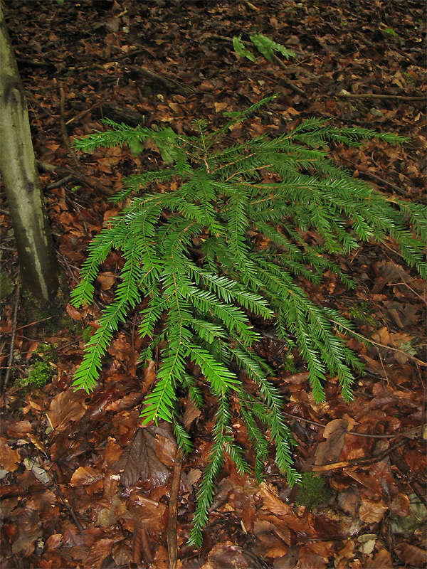 Подрост тиса ягодного (Taxus baccata) в Карпатах под пологом густого смешанного леса. Обратите внимание на полное отсутствие травянистой растительности. Она отсутствует из-за очень низкой освещенности. Тис в таких условиях выглядит вполне жизнеспособным (ссылка на источник фотографии)