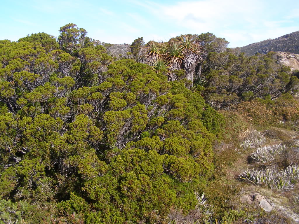 Podocarpus alpinus с острова Тасмания. Встречается на вершинах гор. Это прямостоячее или стелющееся очень обильно ветвящееся деревце до 1 м высотой (ссылка на источник фотографии)